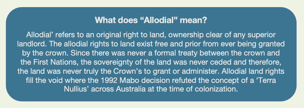 In the First Nations Doctrine of Creation and Allodial Title, First Nations people and their land come under First Nations Customary law in reference to Malo Law. This established that First Nations people can create and own their intellectual property by virtue of Malo Law which is recognized in Common law. Native Title has formal recognition in key court cases and legislation, including: